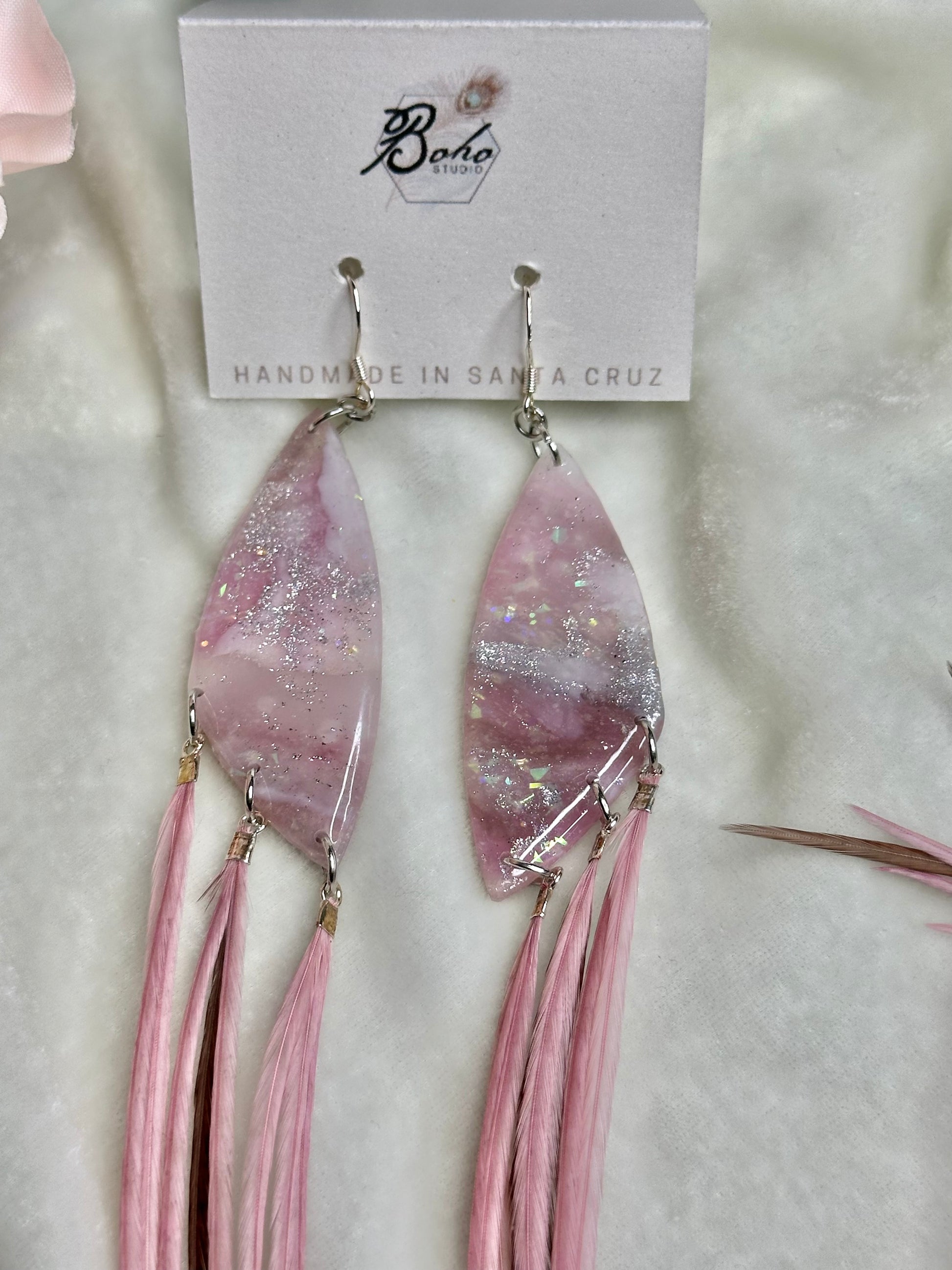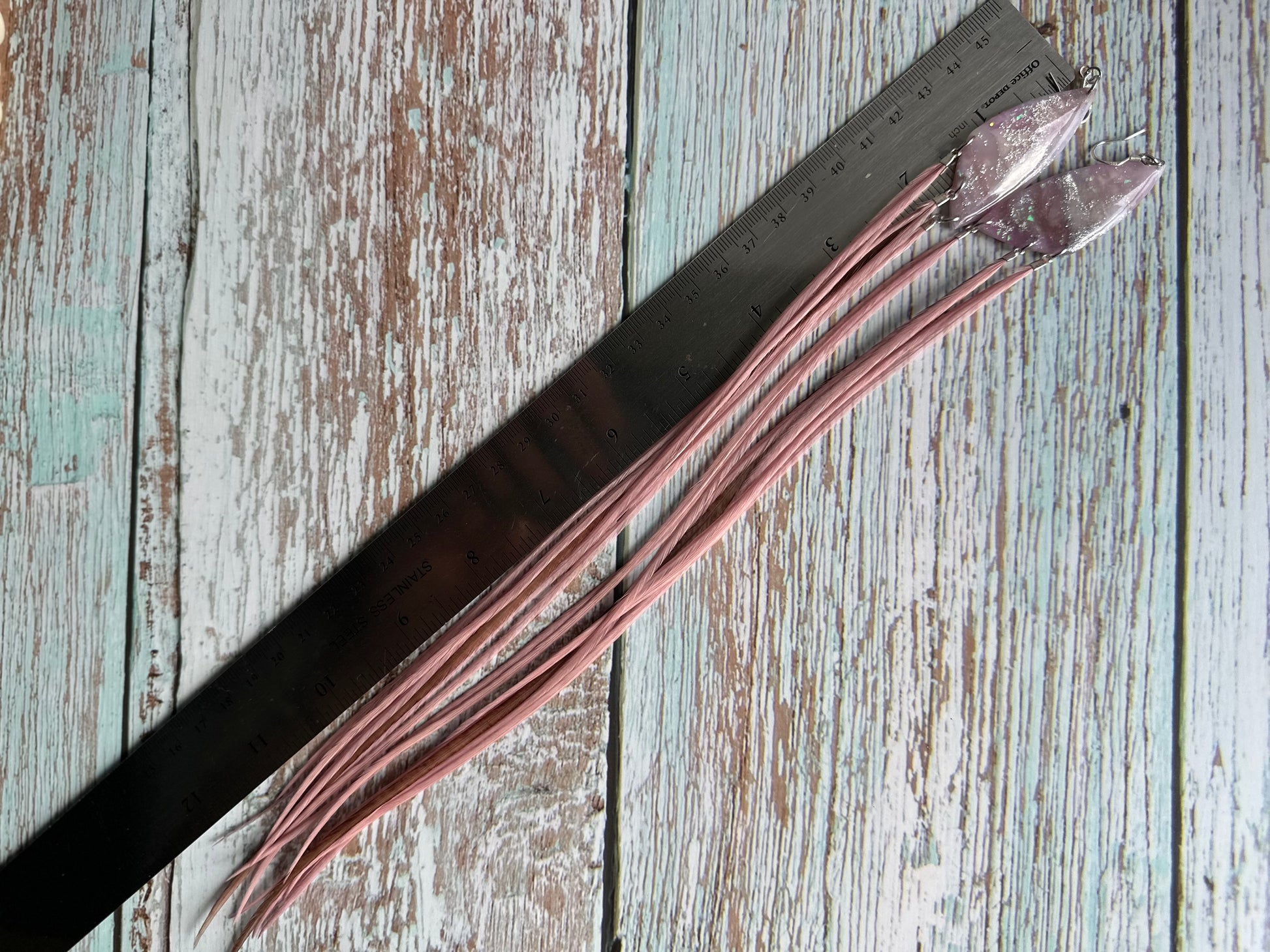 hooks and accents are sterling, silver and silver plated. The earrings measure approximately 13 inches including feathers.