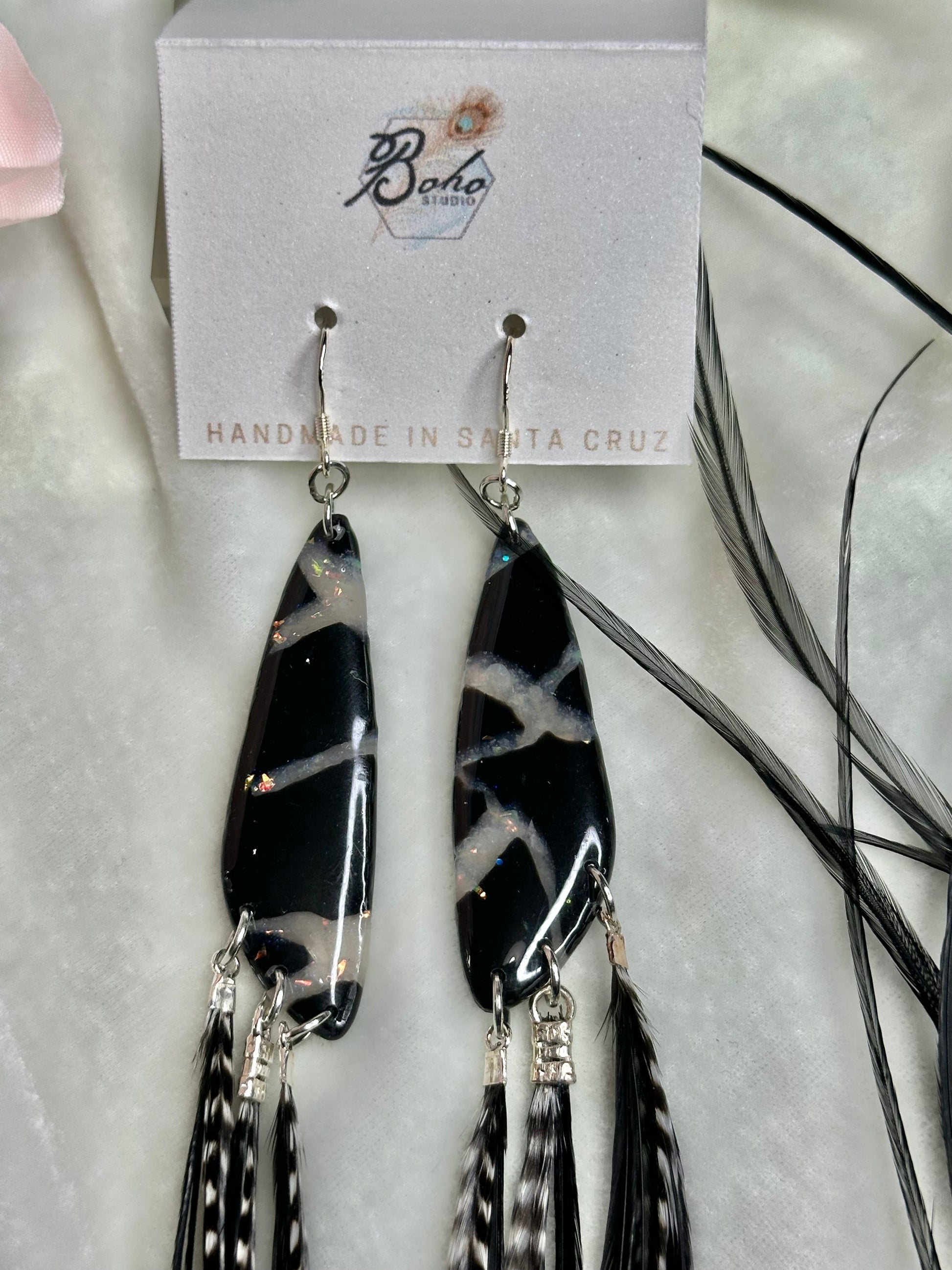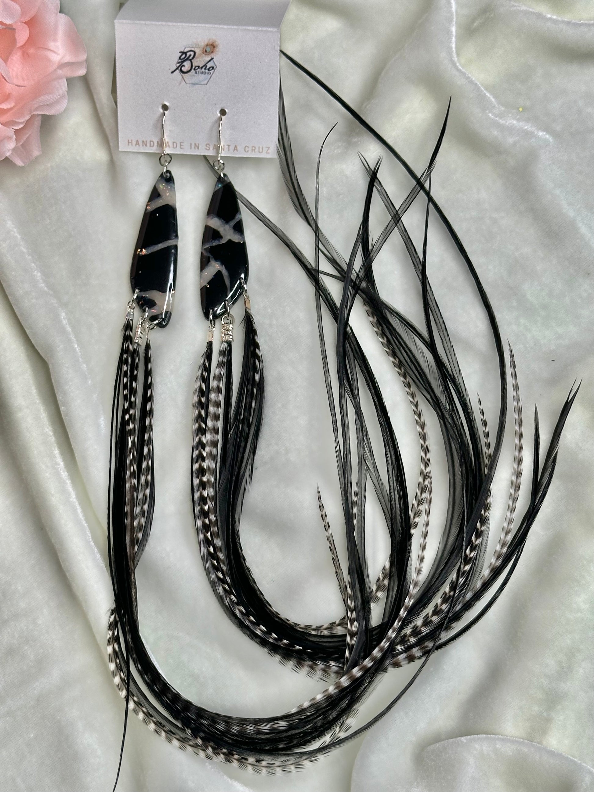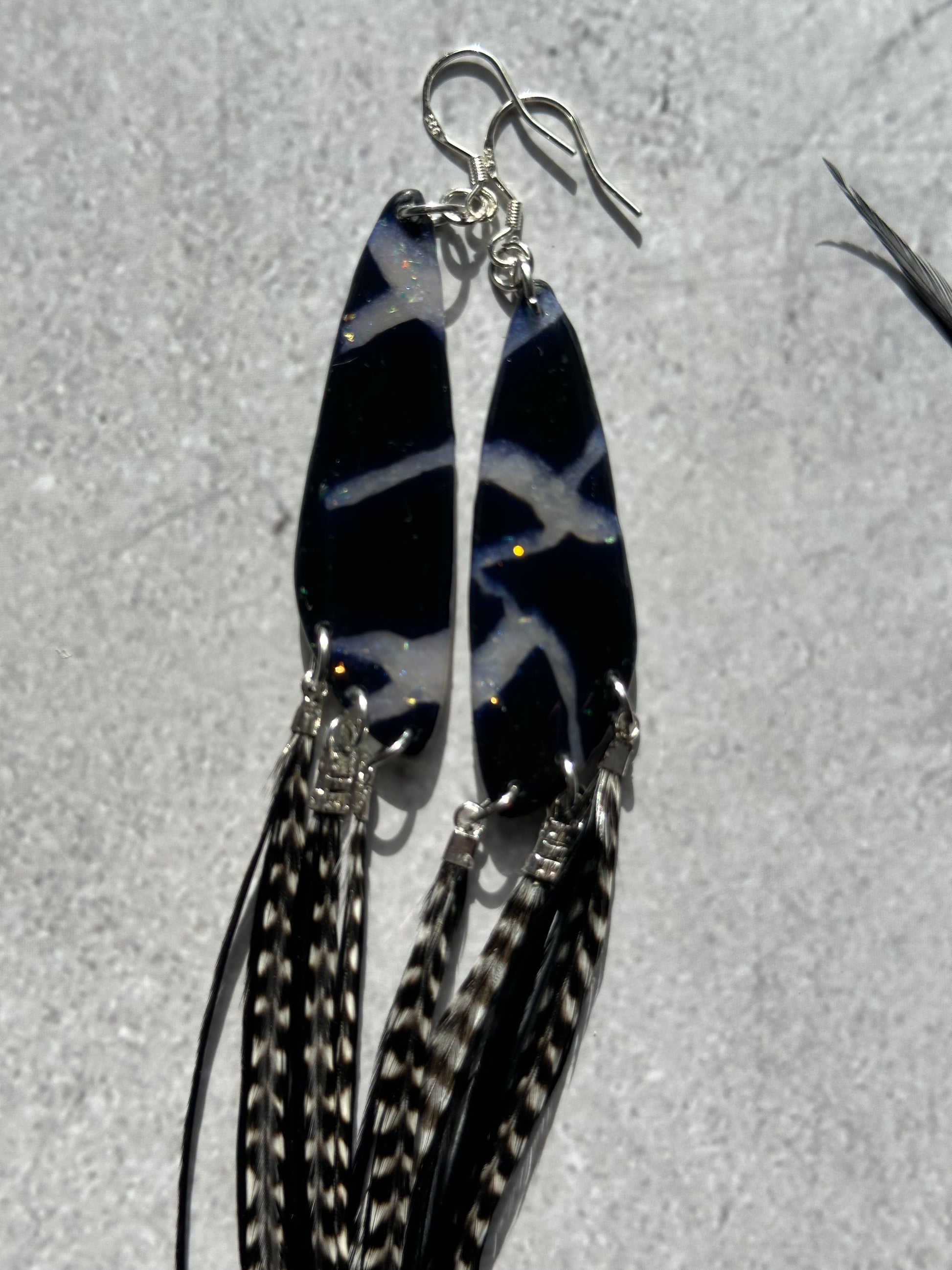 Sterling Silver Hook earrings with feathers measure approximately 17" long