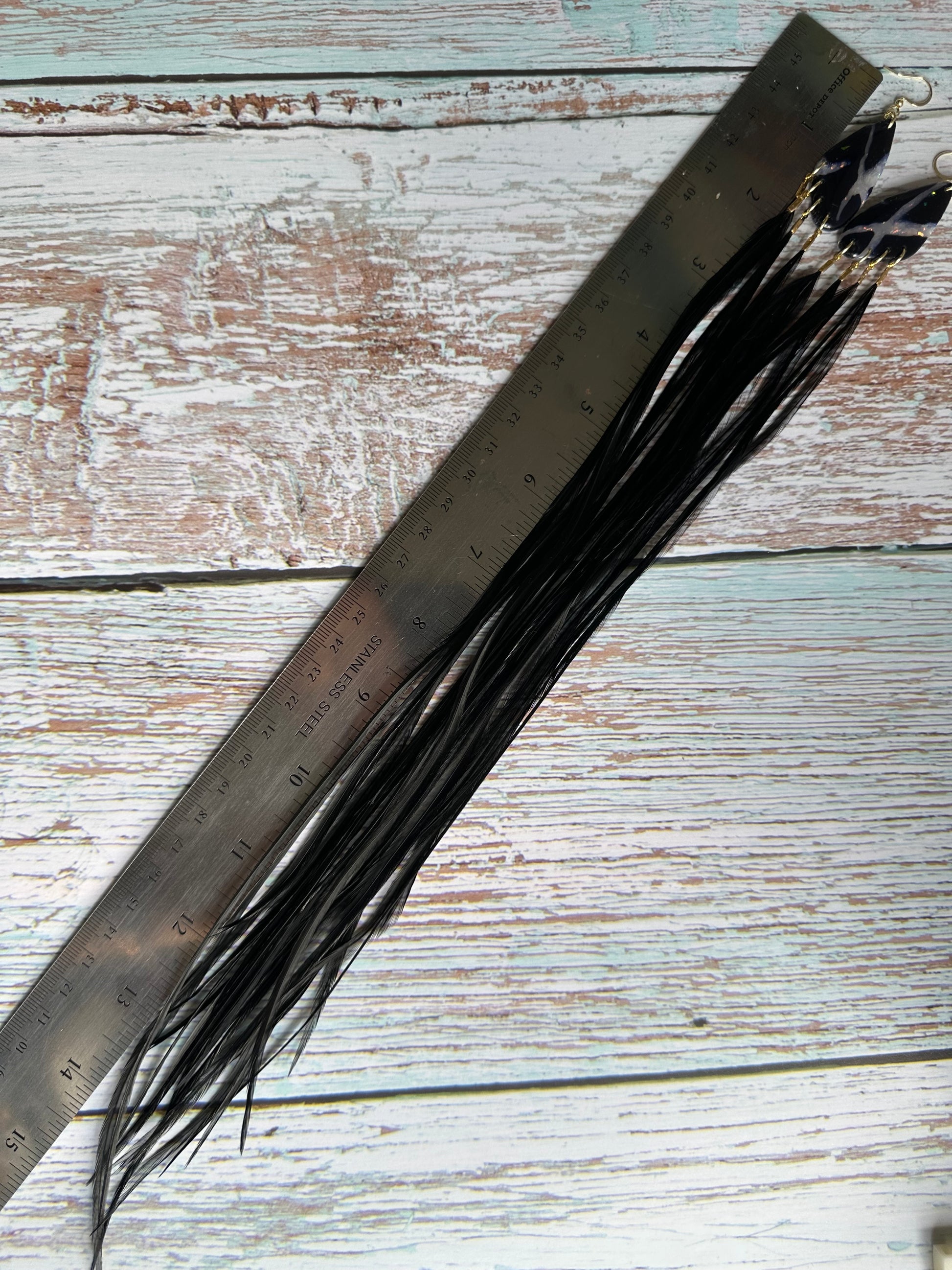 Gold Plated Hook earrings with feathers measure approximately 17" long