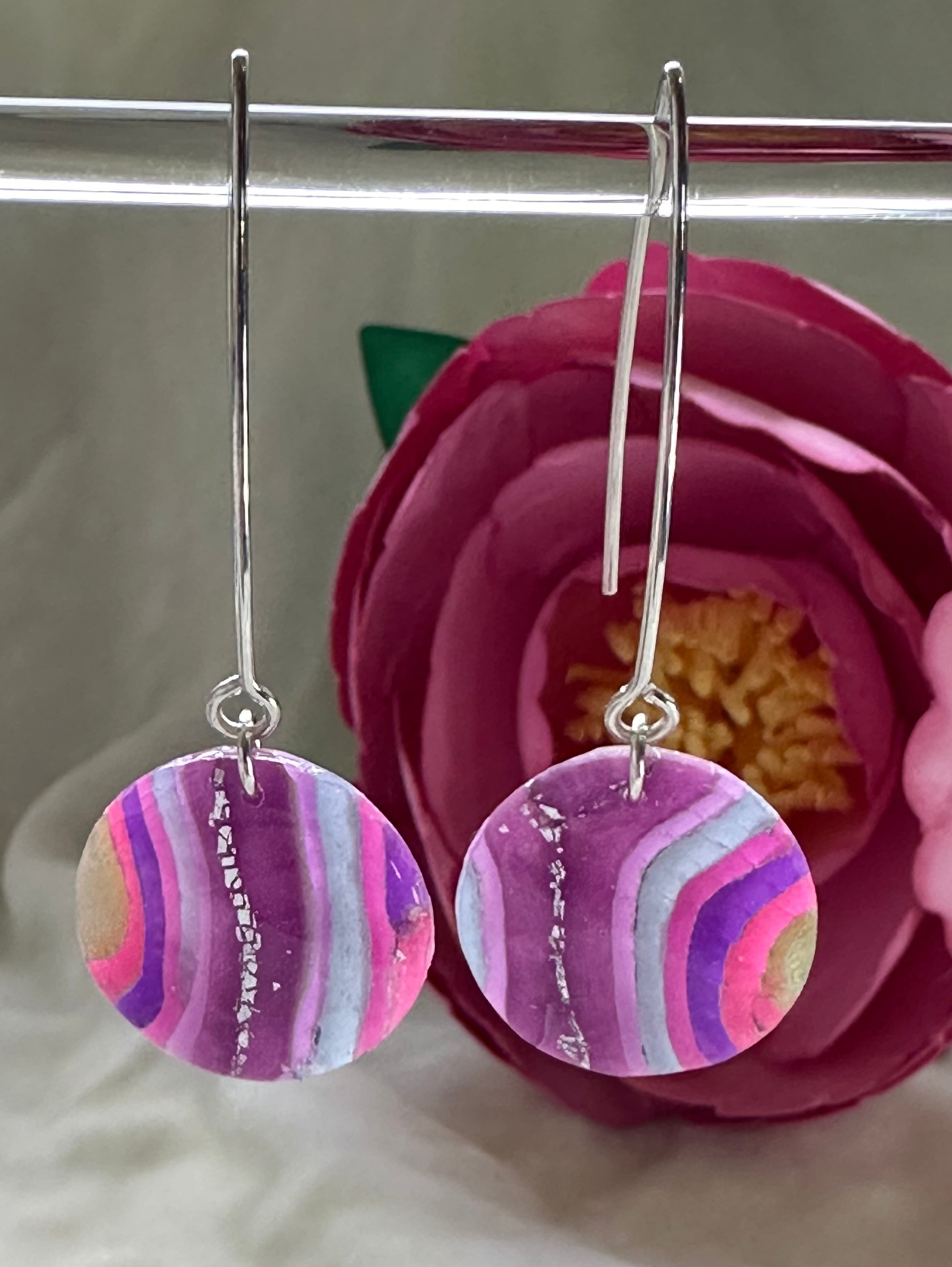 Summer bright agate with silver accents. Loops are handmade from Argentium Silver.