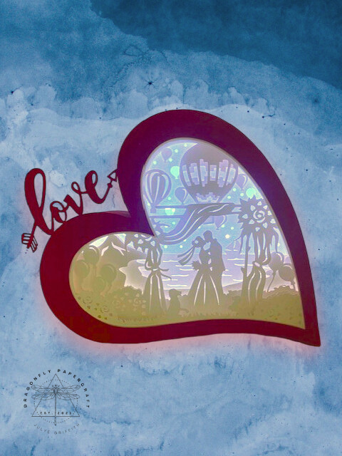 Encased within the heart-shaped frame is a captivating silhouette of a couple in a tender embraceu. The intricate details of their silhouettes form a visual masterpiece that symbolizes the intimacy and connection shared between two individuals deeply in love. This carefully crafted light box, measures [5.5x7.5x2]